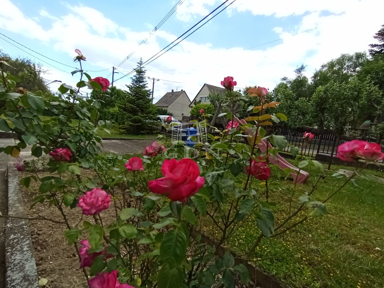 * 831 m²-es telek – tágas, napfényes kert rózsabokrokkal, termő gyümölcsfákkal, ahol bőven elfér egy medence