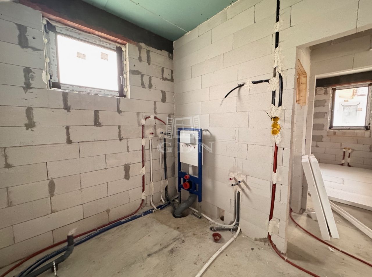 Külső falazat: Ytong 30 cm-es, 12 cm-es Dryvit hőszigeteléssel, 20 cm-es cellulóz alapú fújt födém szigeteléssel.