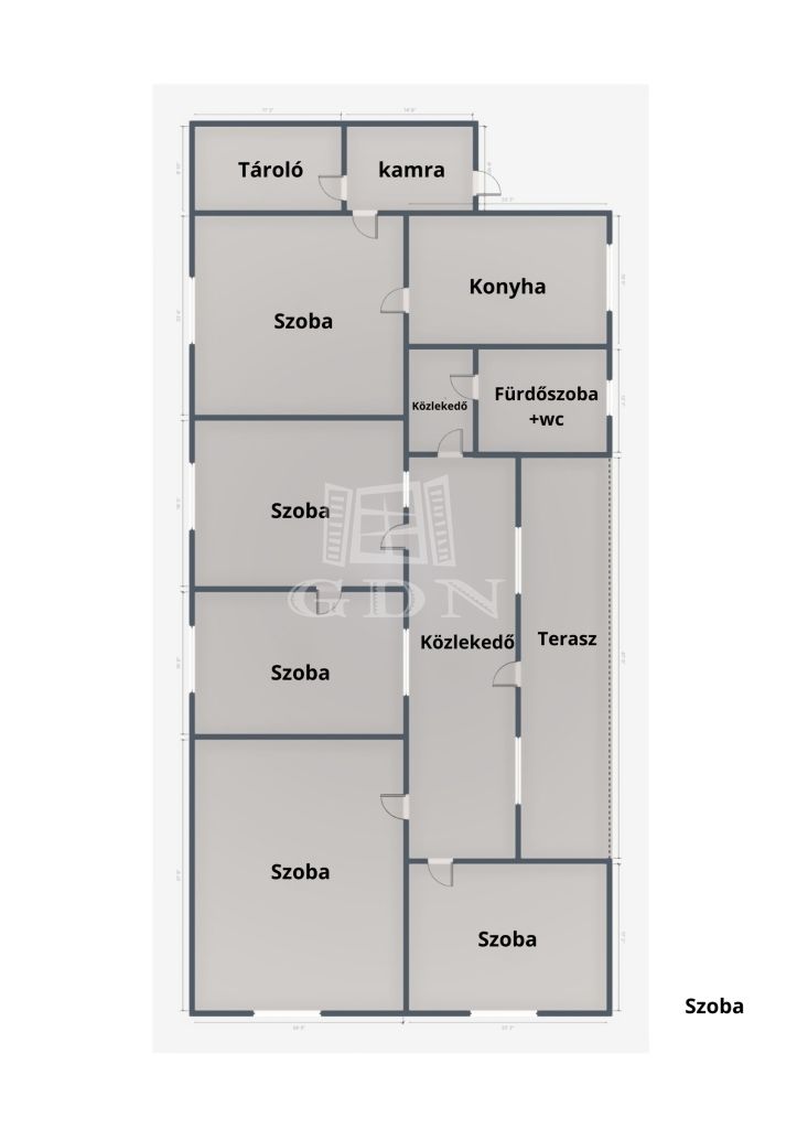 5 nagy méretű szoba, tágas közlekedő, külön étkező, konyha, kamra, valamint fürdőszoba–WC biztosítja a kényelmes életteret. A 150 m²-es lakótér méretéből adódóan nagycsaládosok számára is kiváló választás, de akár többgenerációs otthon kialakítására is alkalmas lehet.