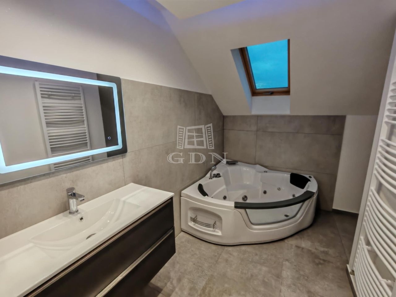 -sarokkádas pezsgőfürdős, elegáns fürdőszoba