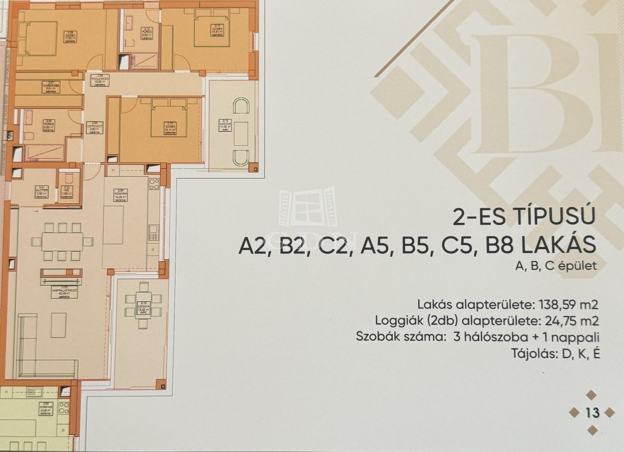 tartozik, 2 loggia amelyek alapterülete 24,75 négyzetméter. A 138,59 négyzetméteren amerikai