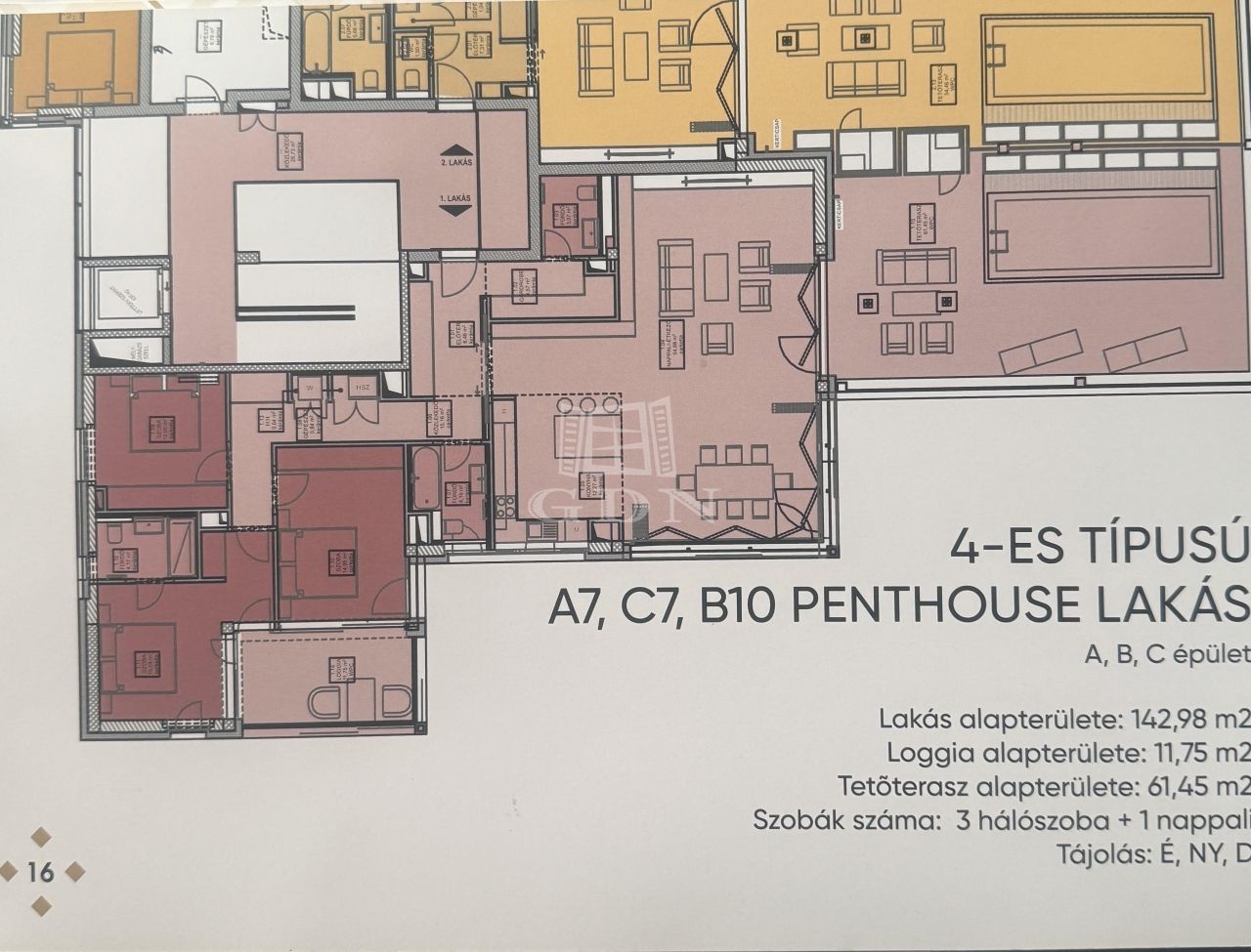 A C/7-es típusú második emeleti penthouse lakás 142,98 négyzetméteres, tartozik hozzá loggia amelyek alapterülete 11,75 négyzetméter valamint egy 61,45 négyzetméteres tetőterasz ahol akár saját medence telepitését is kérheti amelyről a Balatonra csodálatos kilátás nyílhat. A 142,98 négyzetméteren amerikai konyha, 3 hálószoba, nappali, gardróbszoba, 2 fürdőszoba, valamint vendég WC is található. A tetőteraszon napozhat, szaunázhat vagy akár egy 6 méteres medencét is telepíthet. Az ingatlanhoz mélygarázsok és tárolok is megvásárolhatóak.