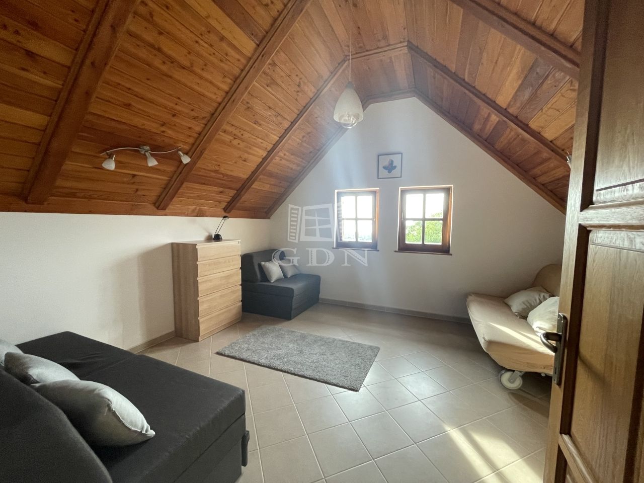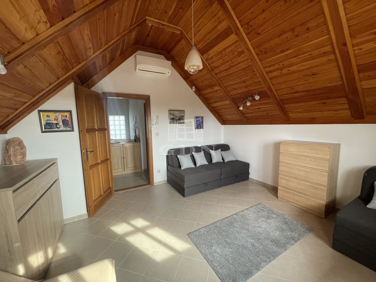Kiegészítők: cserépkályha, infraszauna, félköríves terasz (25 m²), melynek burkolata felújításra szorul, így lehetőséget biztosítva a további egyéni igények kialakítására.