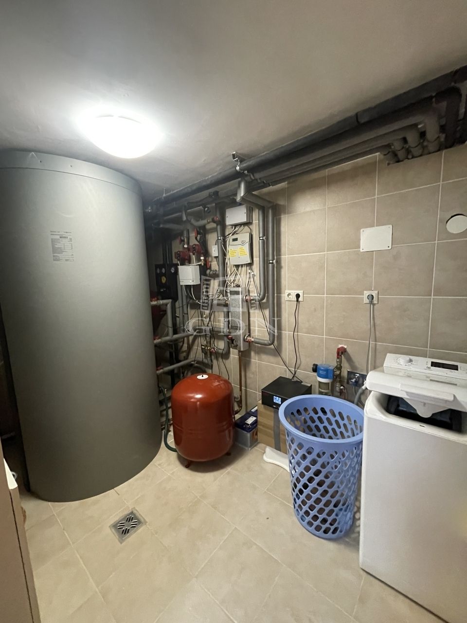Fűtés: a föld alatti 5 m3-es propángáz tartály biztosítja a padlófűtést minden szinten, a nappaliban cserépkályha sütőfunkcióval, split klímák, a fürdőkben plusz törölközőszárító radiátorok.