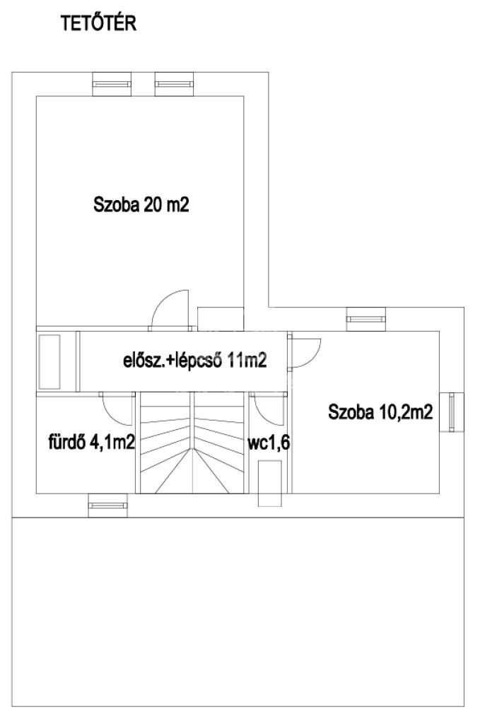 Emelet: 2 hálószoba (20 és 10,2 m²) split klímákkal, sarokkádas fürdő (4,1 m²), külön WC (1,6 m²), tároló