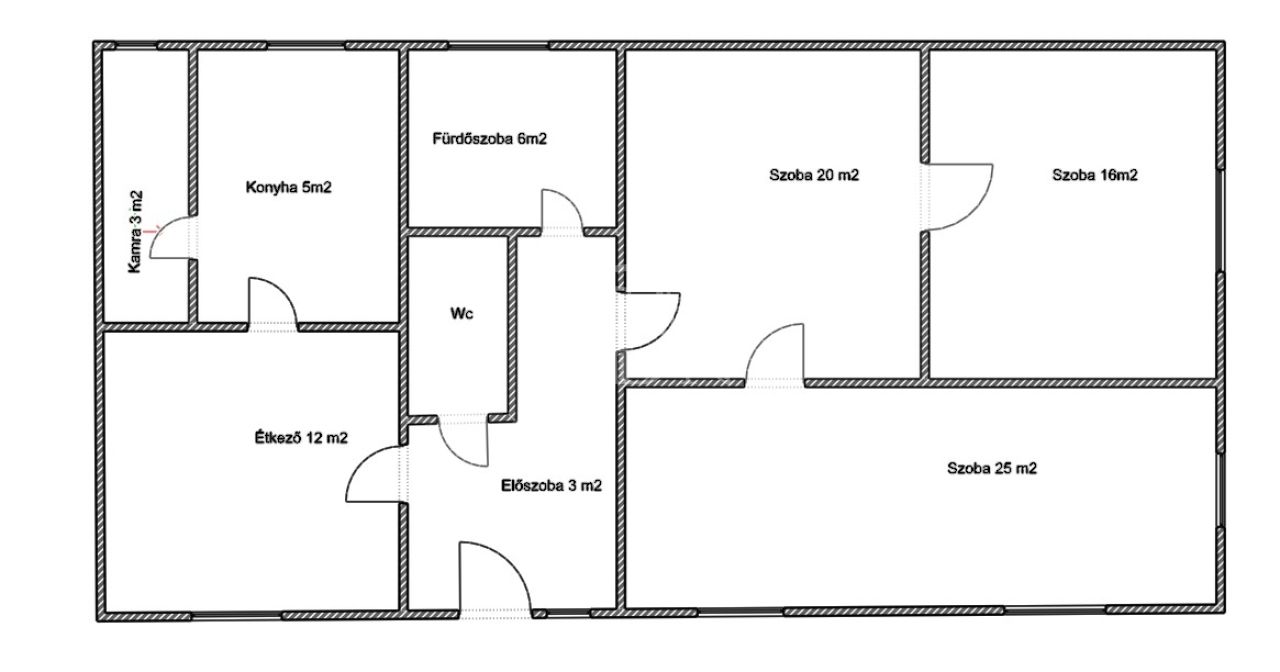 A három szoba mellett konyha és egyéb mellékhelyiségek állnak rendelkezésre, így család számára is kényelmes elrendezésű lehet.