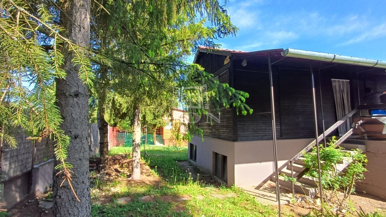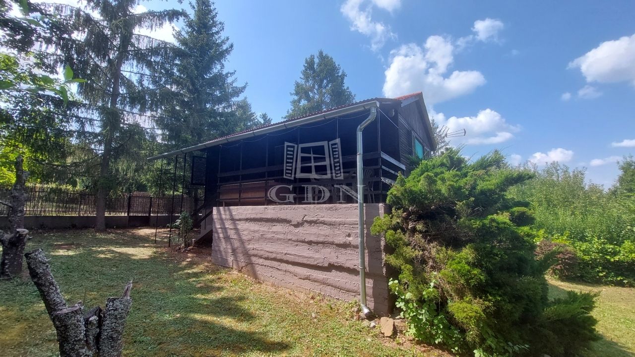 Bánk tó közeli utcájában eladó, E40 típusú 40 nm-es Erdért faház (+10 nm terasz, + 50 nm pince) , 568 nm-es telken.