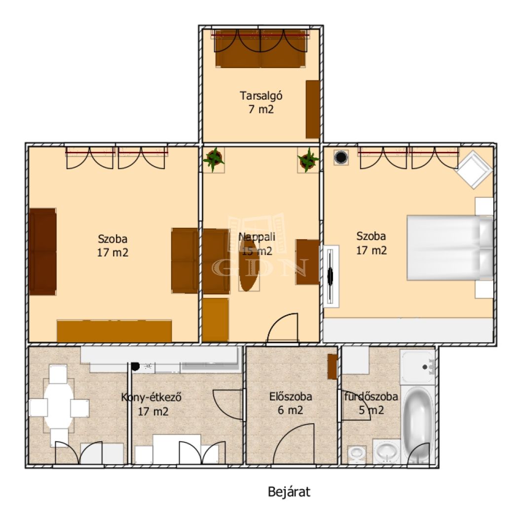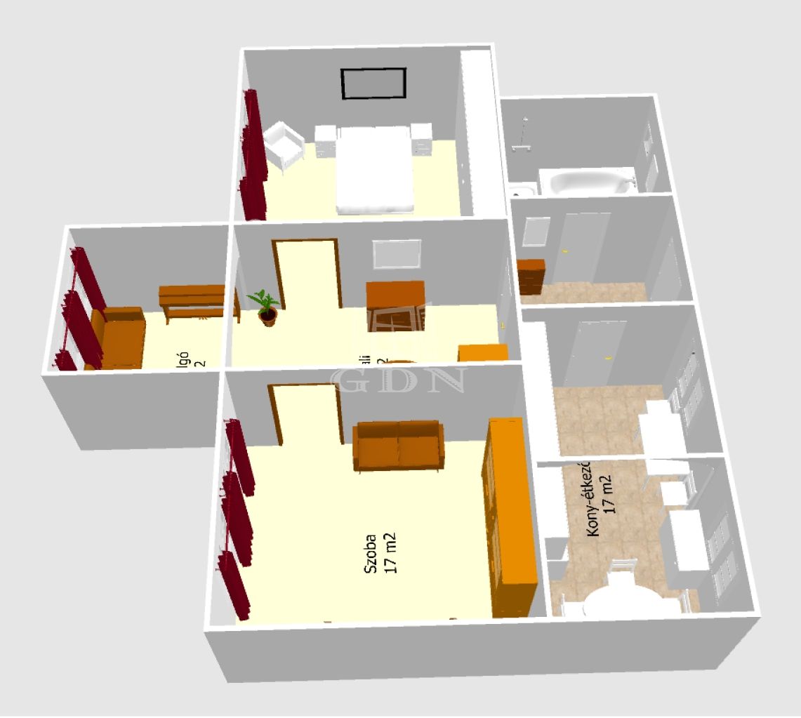 - 1 szoba, konyha-étkező, fürdőszoba-WC