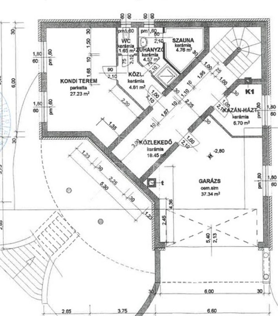 Szuterén és pinceszint: kétállásos fűtött garázs (37 nm), szauna, tágas fitnessz-szoba (27 nm) és tároló