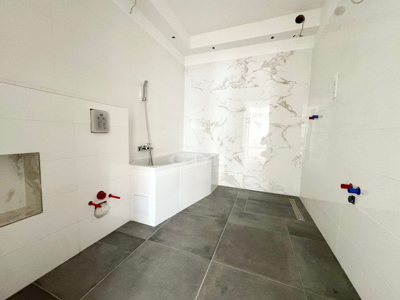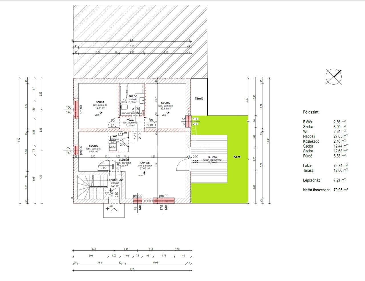 Az épület 38 cm-es Porotherm klímatéglából épült, melyre 10 cm-es dryvit szigetelés került. A nyílászárók dupla rétegű üvegezéssel ellátott ablakokkal és teraszajtókkal kerültek beépítésre. A lakásban a beltéri ajtók, világító testek és a konyhabútor kialakításra vár, melyet az új tulajdonos a saját igényeire szabhat.