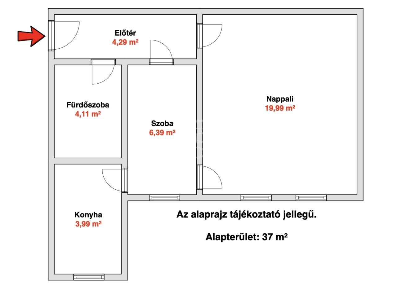 | 37 m2Alapterület | 1 + 1 Szoba |