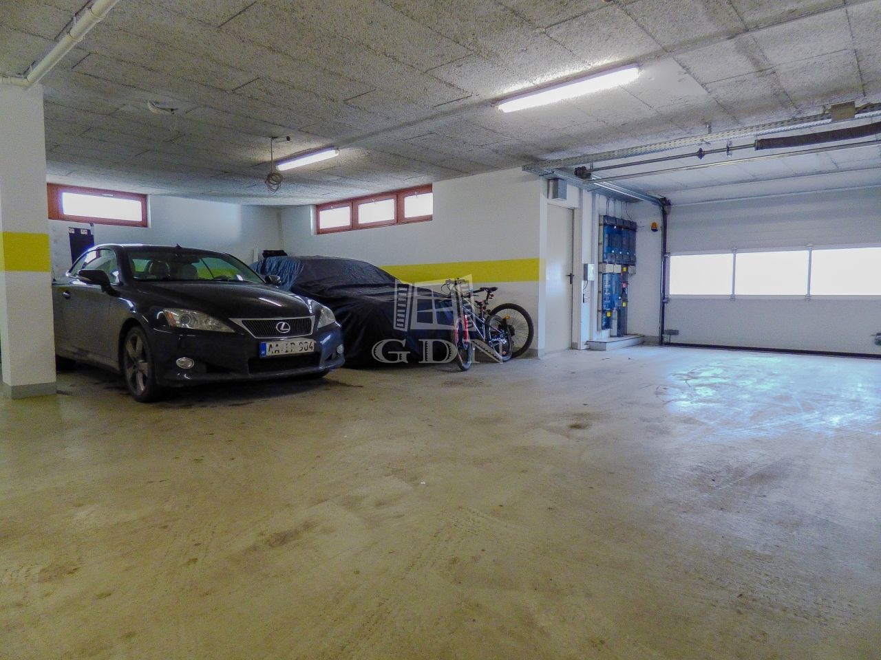 Az ingatlanhoz tartozik egy dupla teremgarázs beálló a 0. szinten és egy tároló (4 nm) közvetlenül a parkolóhelyek mellett, mely kötelezően megvásárolandó 20 M ft értékben.
