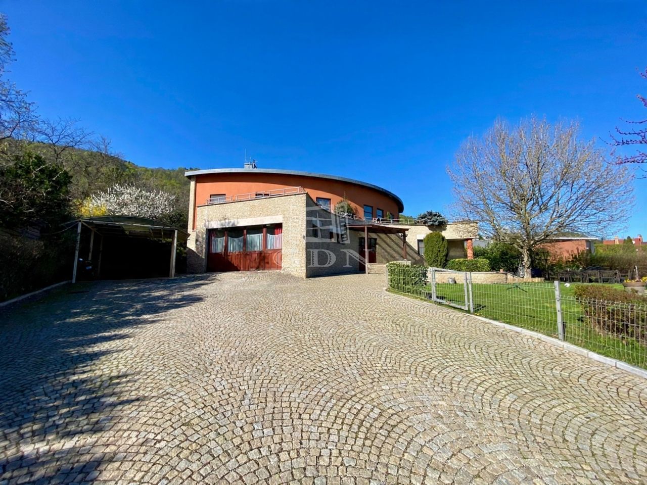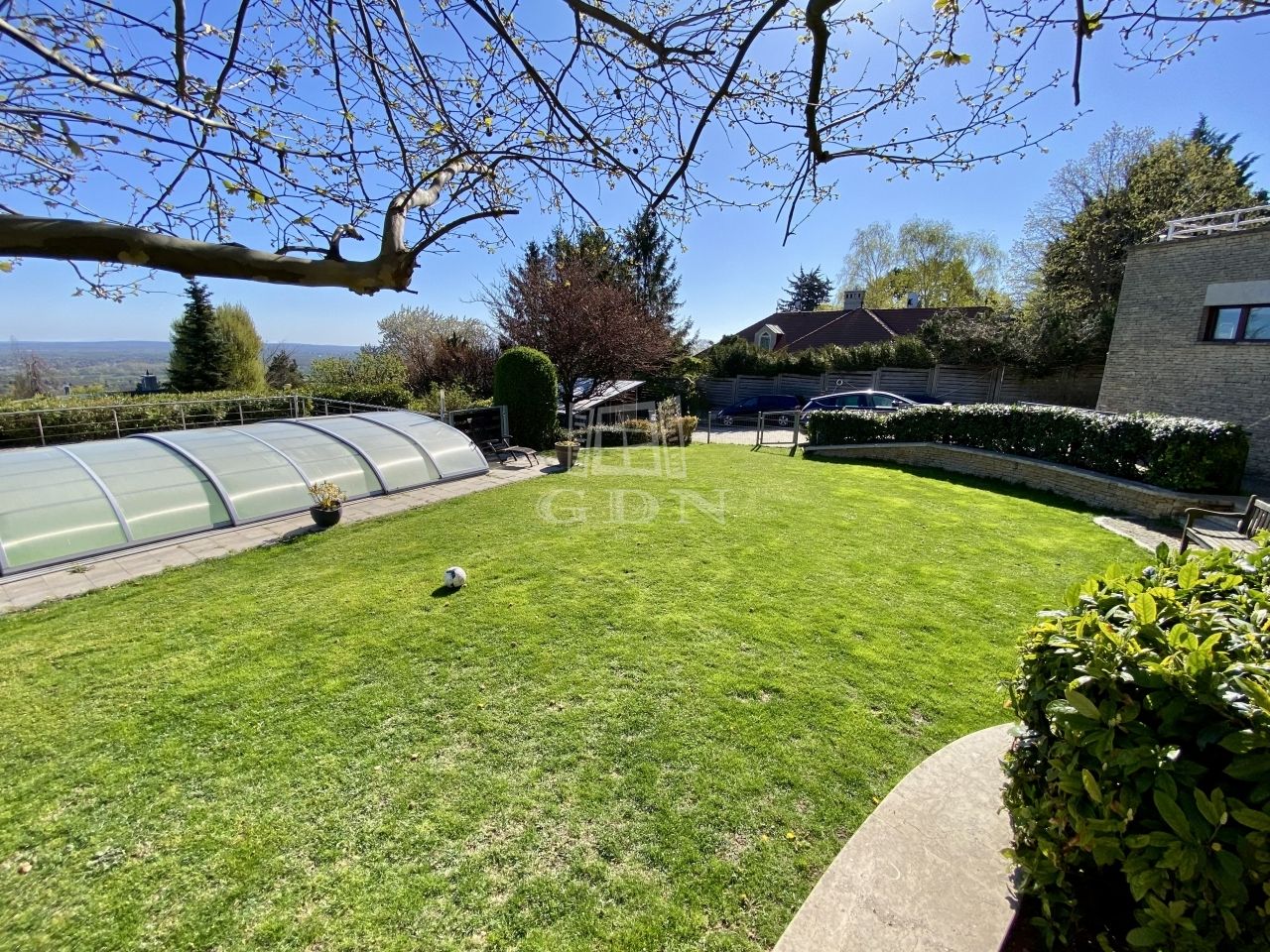 A 2000 négyzetméteres, intim telken elhelyezkedő, 443 négyzetméteres ingatlan elvehetetlen, örök panorámával rendelkezik.