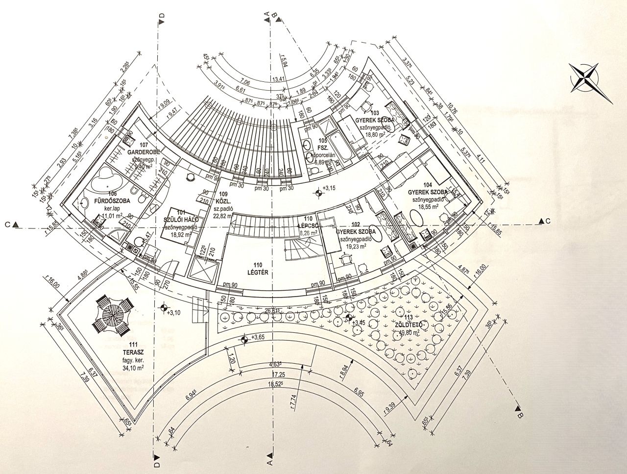 Az emeleten a privát élettér kapott hangsúlyt, ahol négy hálószoba, két hidromasszázs káddal felszerelt fürdőszoba, gardrób és egy elegáns master bedroom kialakítás várja az új tulajdonost. Az ingatlan műszaki tartalma is kiemelkedő: központi porszívó és szellőztető rendszer, prémium fa nyílászárók hőszigetelt üvegezéssel és szúnyoghálóval járulnak hozzá a magas komfortérzethez.