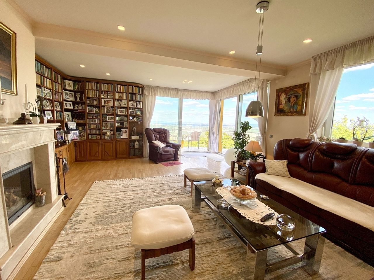 A hatalmas, 44 m2-es nappaliban egy gyönyörű márványkandalló kapott helyet, amely hűvösebb időben meghitt, kellemes hangulatot varázsol. A nappaliból egy üveg tolóajtóval elválasztott étkező és konyha nyílik. Ha akarjuk, egybenyithatjuk a két teret.