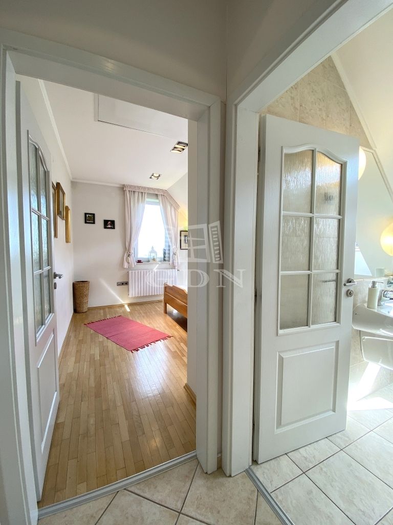 A két nagyméretű hálószoba az emeleten található, ahová gránit burkolatú lépcsőn jutunk fel.