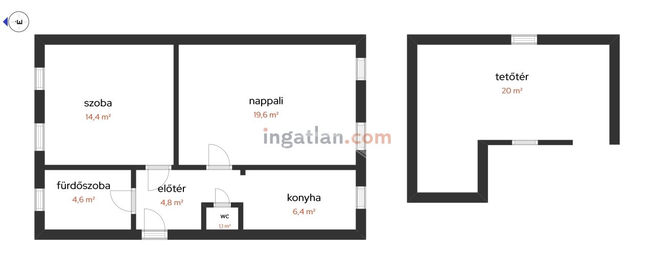 61 m2Alapterület 2 Szoba