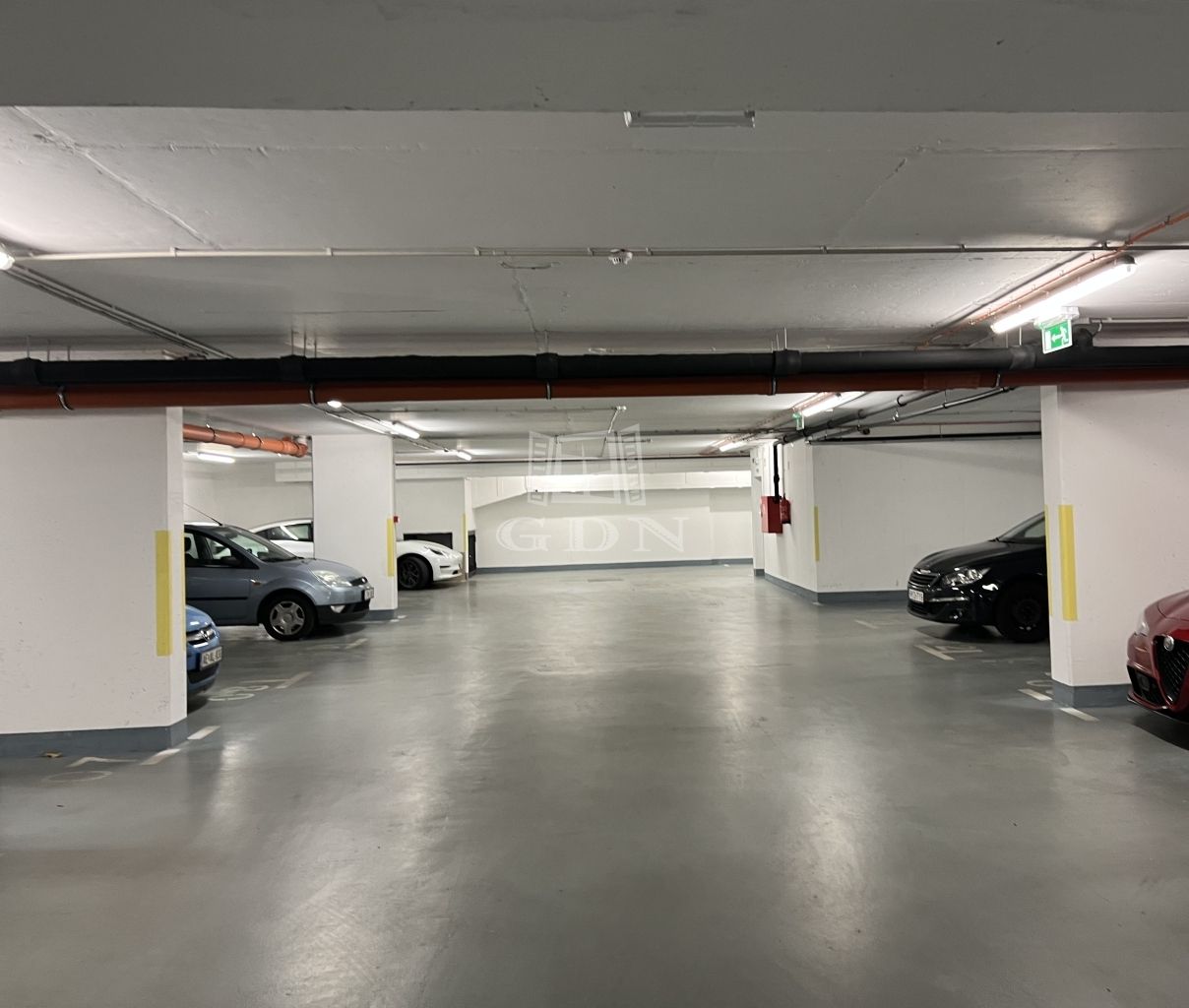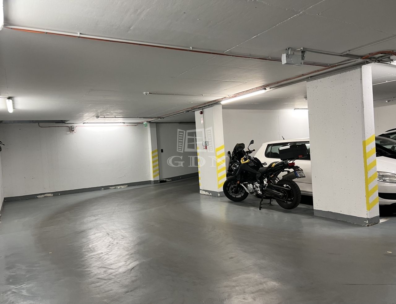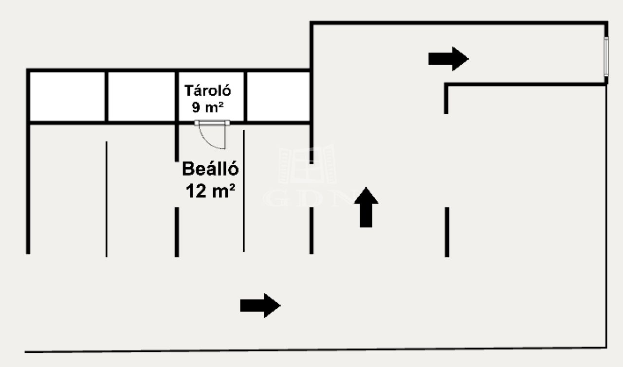 Eladó Budapest IX. kerület Rehabilitációs területen Márton utcai újszerű társasház teremgarázsában egy 12 négyzetméteres gépkocsibeálló 9 négyzetméteres garázsból nyíló, kulcsra zárható tárolóval.