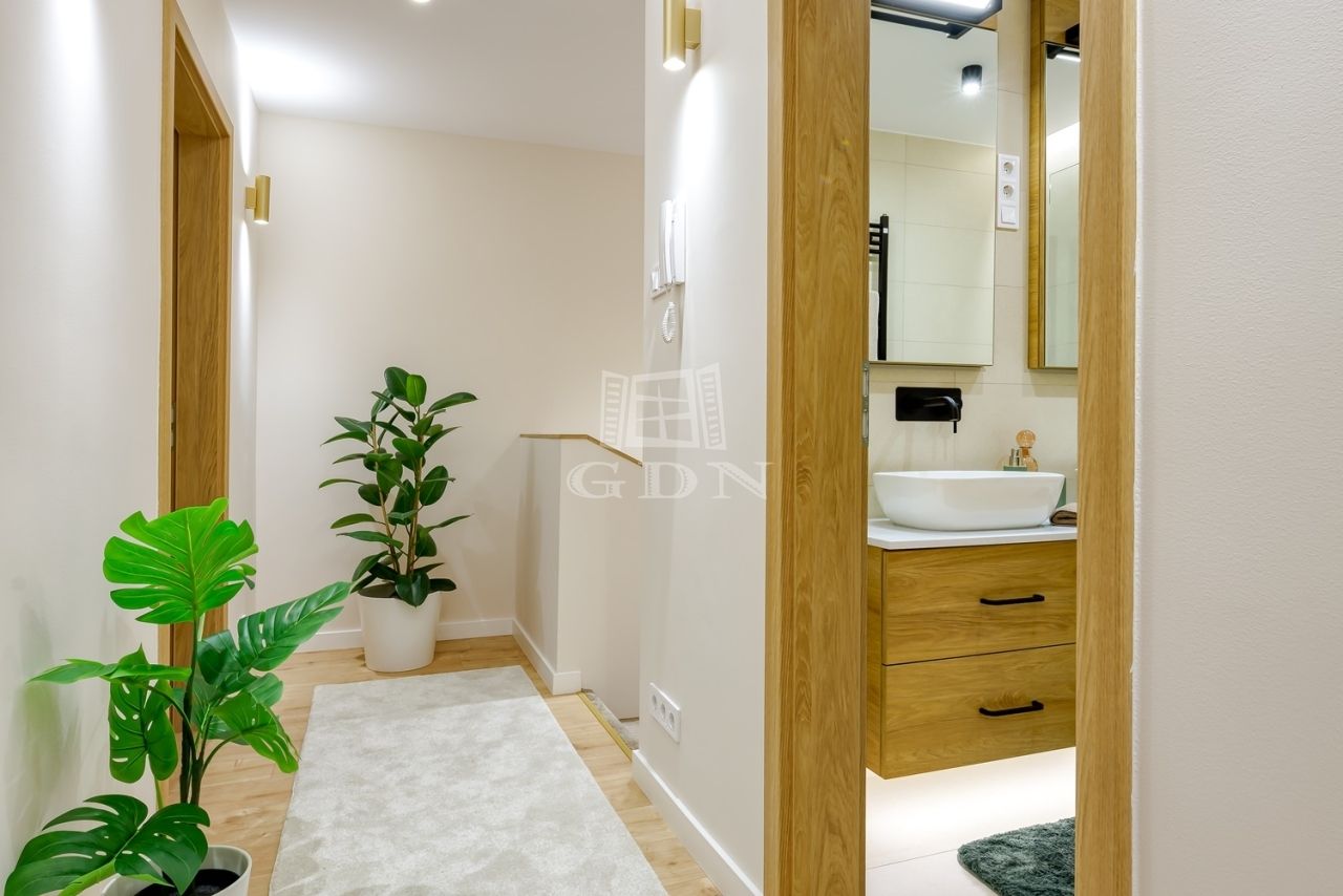 Tulajdonostól eladó a Liliom utcában egy 1997-ben épült, liftes, rendezett társasház 4. emeletén található, napfényes, modern, teljeskörűen felújított és berendezett, belső kétszintes lakás. A felújítás most fejeződött be, így az új tulajdonos lesz az első lakója. A lakást lakberendező segítségével alakították át egy családbarát, funkcionális és elegáns otthonná, ahol minden részlet új és prémium minőségű.