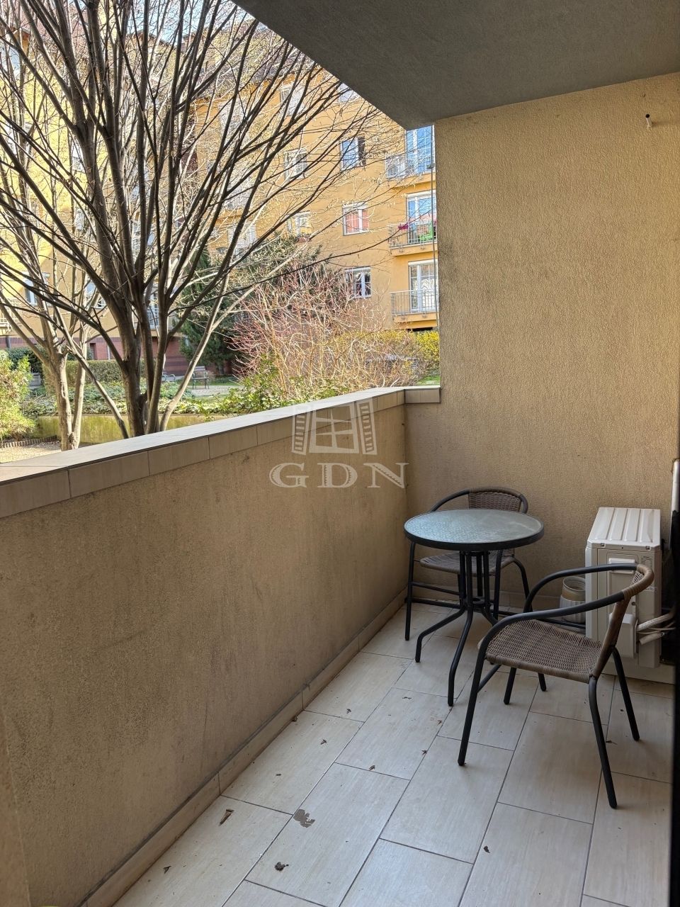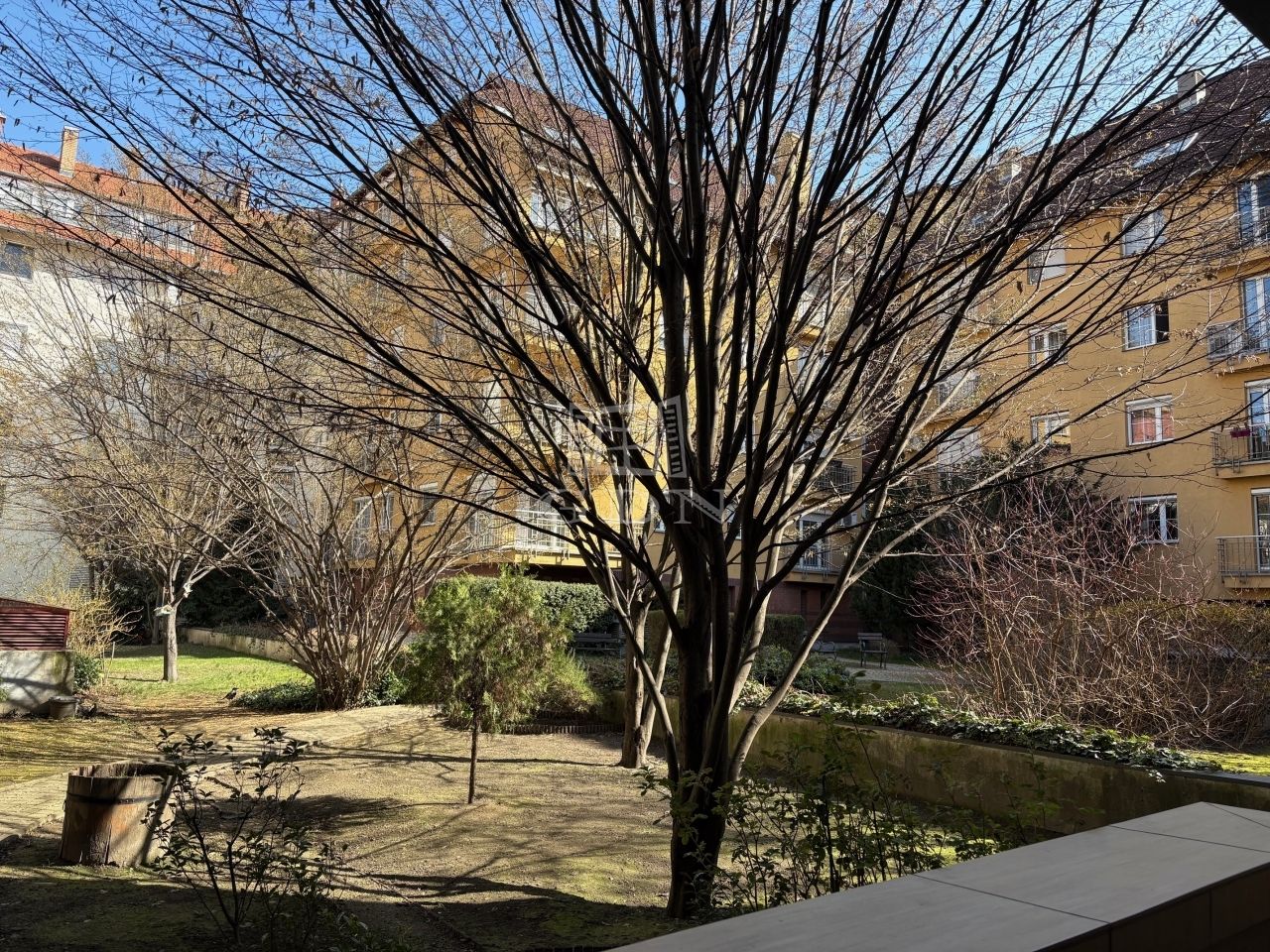 Az ingatlan a 9. kerület Rehabilitációs részére jellemző szépen gondozott, több épület által közrefogott belső kertre néz.