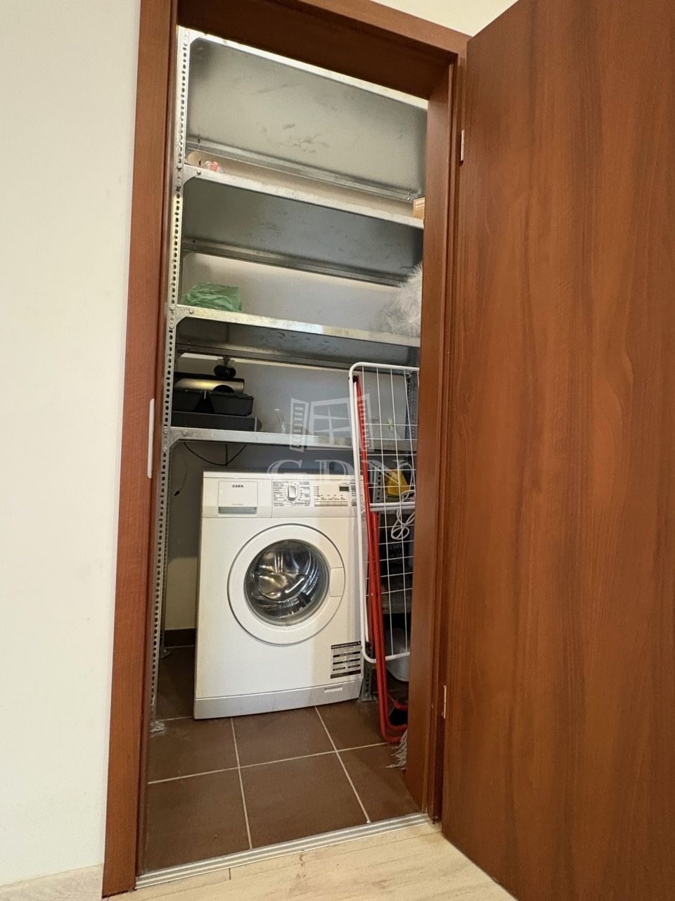 A lakáshoz egy kis tároló is tartozik, közvetlenül a bejárat mellett.