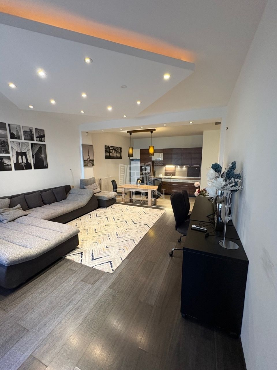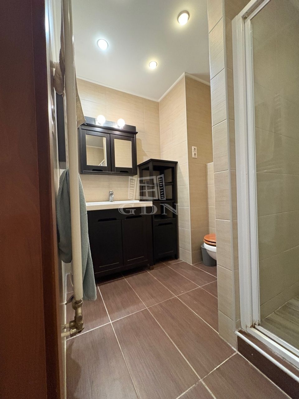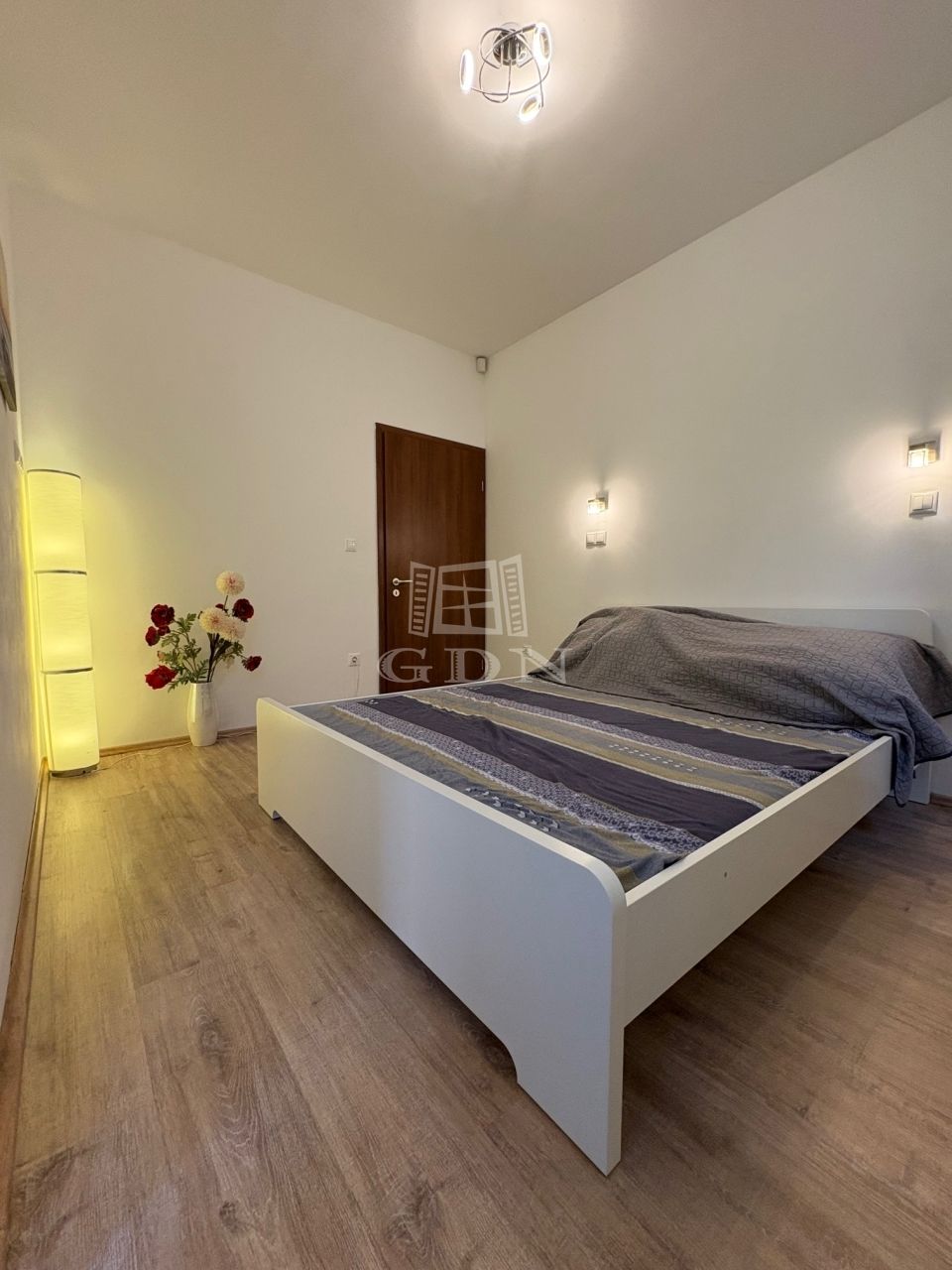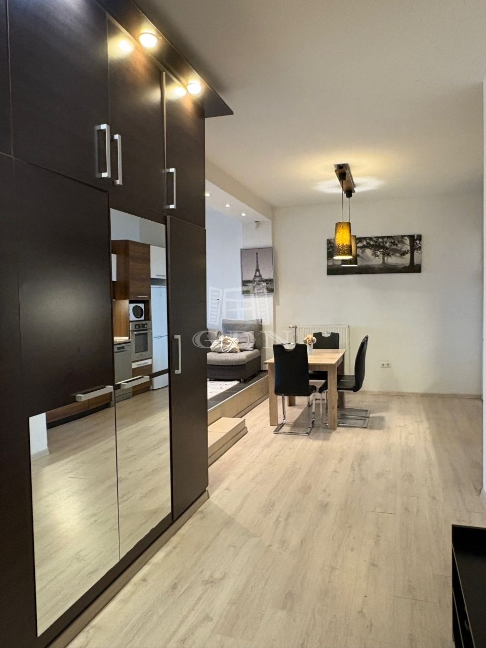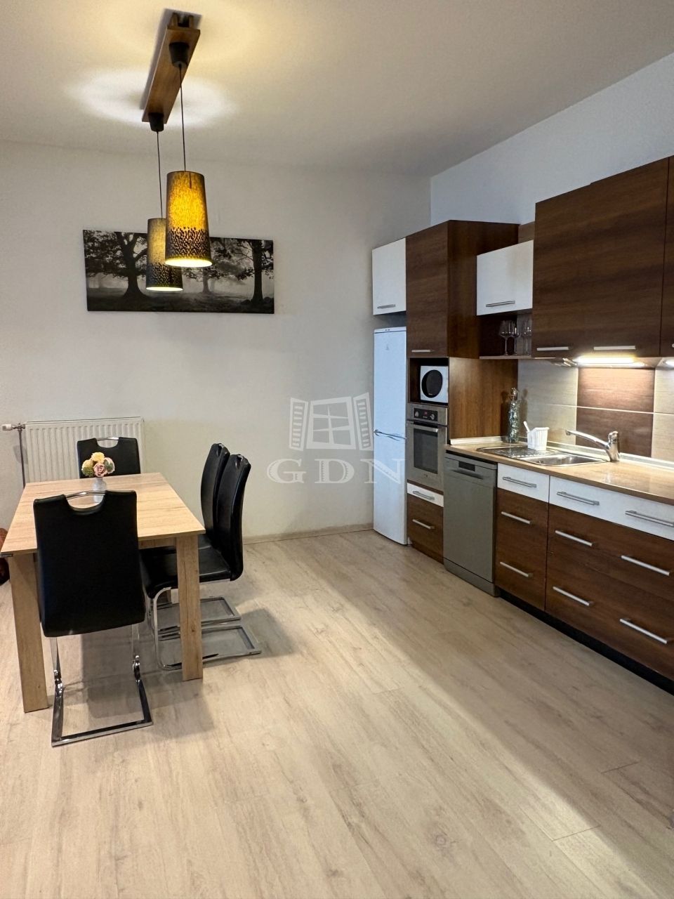 A nappali plusz hálószobás 66 nm alapterületű földszinti lakás fűtéséről házközponti kazán gondoskodik.