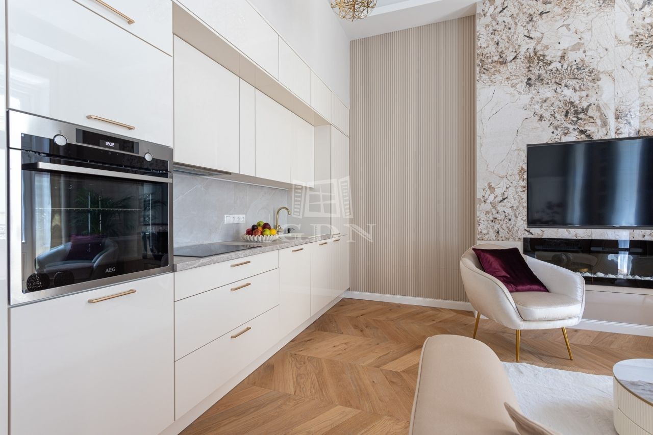 A lakás teljes körű, prémium minőségű felújításon esett át, amely a víz- és villanyvezetékek cseréjét is magában foglalta. Az enteriőrben minden részlet az időtálló eleganciát képviseli: chevron mintás tölgyfa parketta, új fa nyílászárók, designer lámpatestek, minőségi szaniterek és burkolatok alkotnak harmonikus egységet. A közel 4 méteres belmagasság tágas, levegős atmoszférát teremt, míg az AEG gépekkel felszerelt, modern konyha és a gondosan válogatott bútorok azonnali költözést tesznek lehetővé.