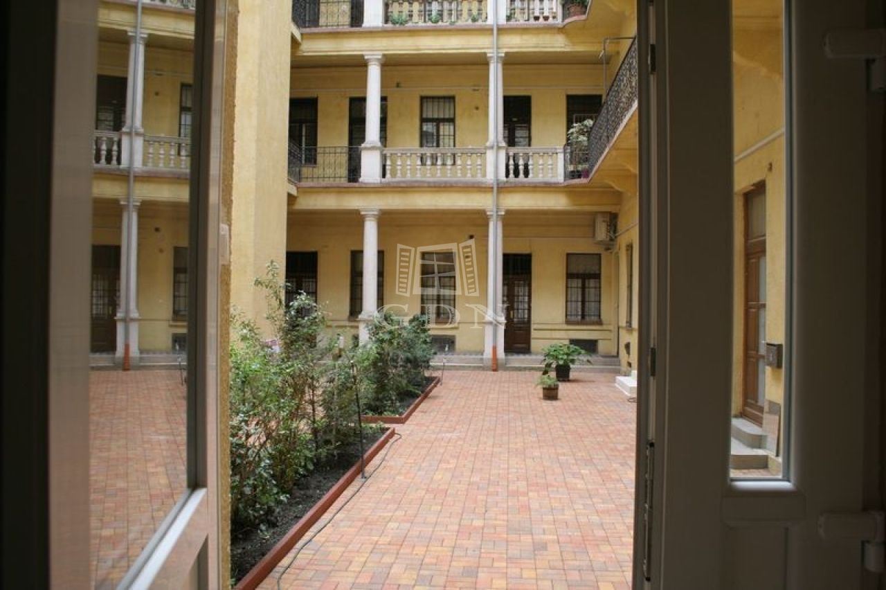 A lakás egy szép állapotú társasházban található, belső udvarra néző ablakokkal, így a belvárosi elhelyezkedés ellenére csendes, nyugodt környezetet kínál.