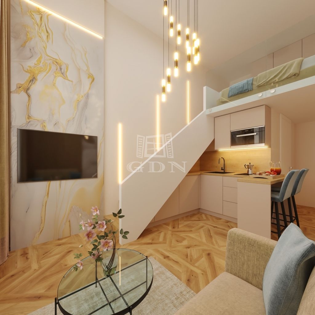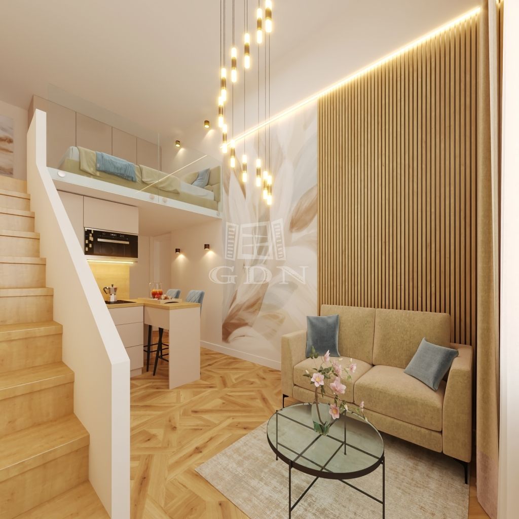 Every detail of the apartment has been carefully thought out: thanks to its practical layout and comfortable gallery, the space feels surprisingly spacious. The gallery is ideal as a sleeping area, leaving the living room completely free for other uses. The modern renovation features high-quality finishes, clean design and space-saving solutions – every centimeter here is designed for comfort.