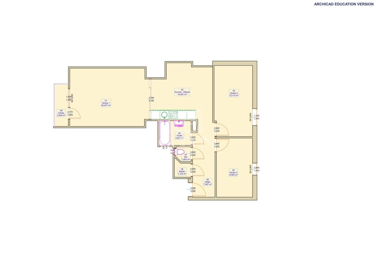 71 m2Alapterület 3 Szoba