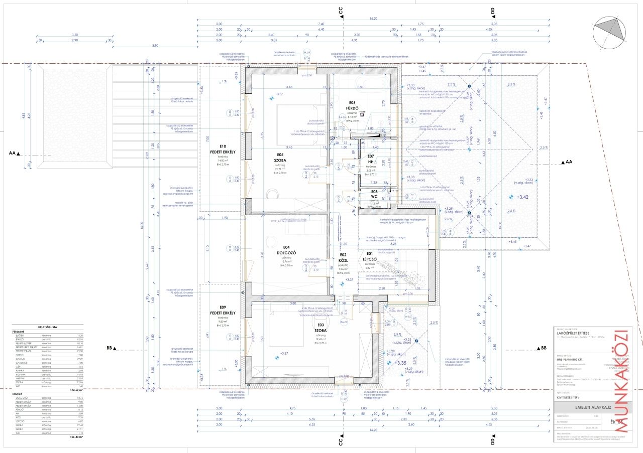 Az emeleten 2 gyerekszoba, dolgozó, + fürdőszoba kerül kialakításra.