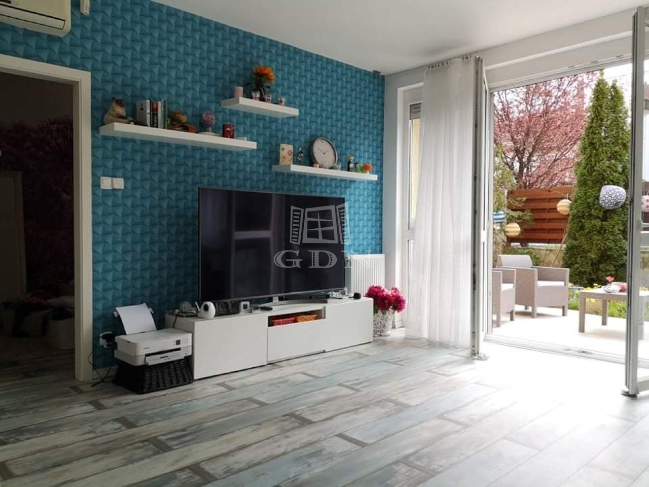 A 60 m²-es, földszinti elhelyezkedésű ingatlan különleges adottsága a közvetlen kertkapcsolat: a 18 m²-es, kényelmes terasz egy gondosan leválasztott, kb. 70 m²-es privát kertre nyílik, amely a 2000 m²-es, parkosított közös kert része. Ez a ritka kombináció valódi nyugalmat és természetközeli életérzést biztosít.