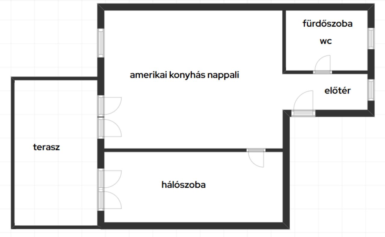 A lakás praktikus elrendezésű, 1+1/2 szobás: az előtérből külön nyílik a világos, amerikai konyhás nappali, valamint a fürdőkádas fürdőszoba WC-vel. Az amerikai konyhás nappaliból közelíthető meg a hálószoba. A nappalit és a kisebb szobát is nagyméretű nyílászárók teszik rendkívül világossá, a déli fekvésnek köszönhetően egész nap természetes fényben fürdik az ingatlan.