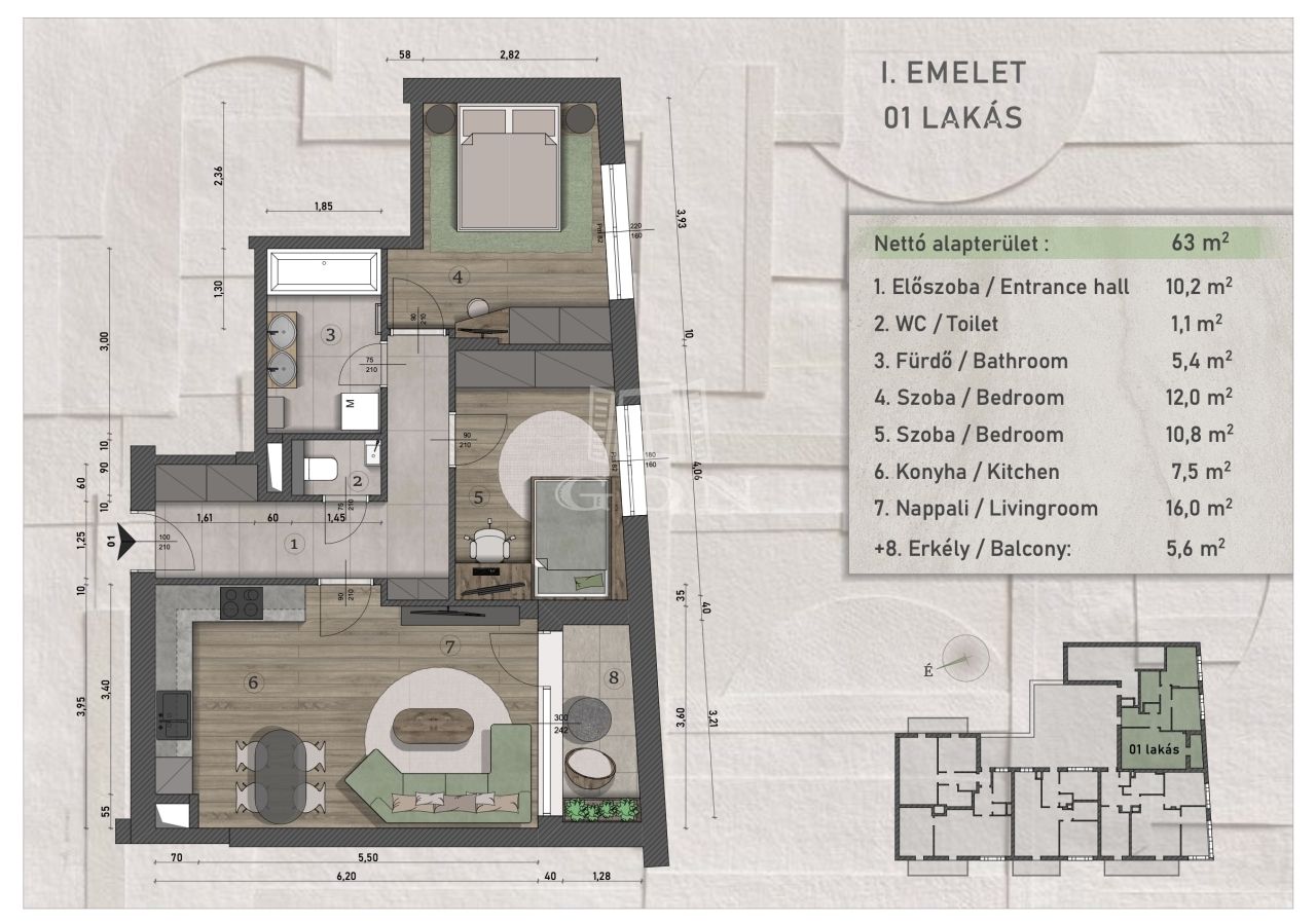 | 63 m2Alapterület | 3 Szoba |