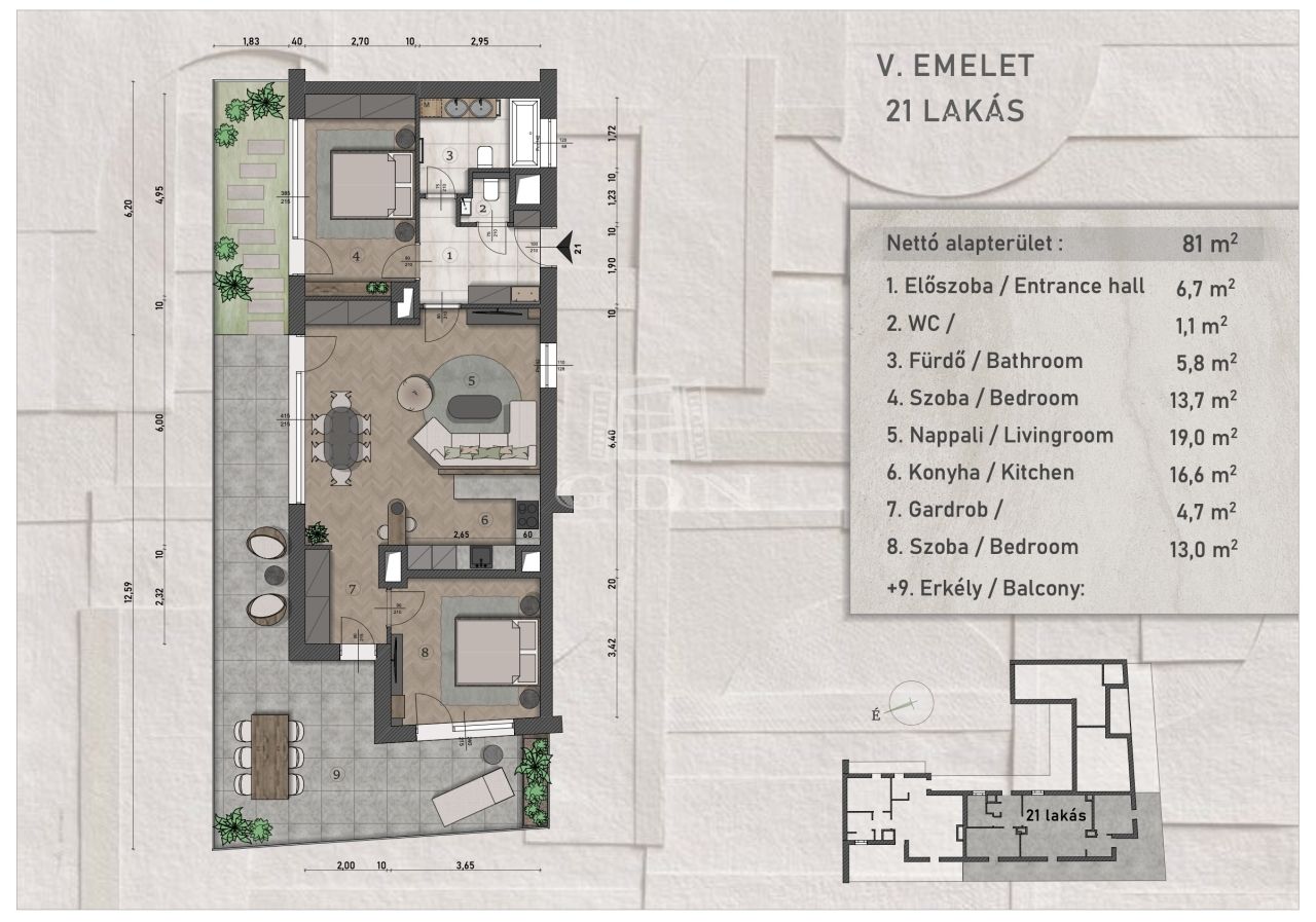 | 81 m2Alapterület | 3 Szoba |