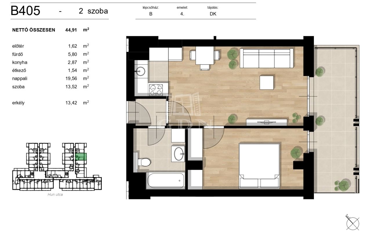 | 45 m2Alapterület | 2 Szoba |