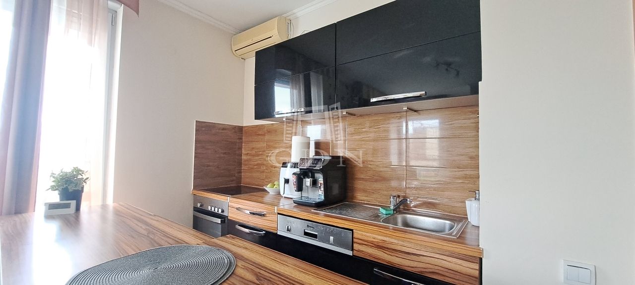 A lakás nagy ablakainak köszönhetően rendkívül világos, modern konyhabútorral, mosogatógéppel, nagy beépített szekrényekkel rendelkezik.