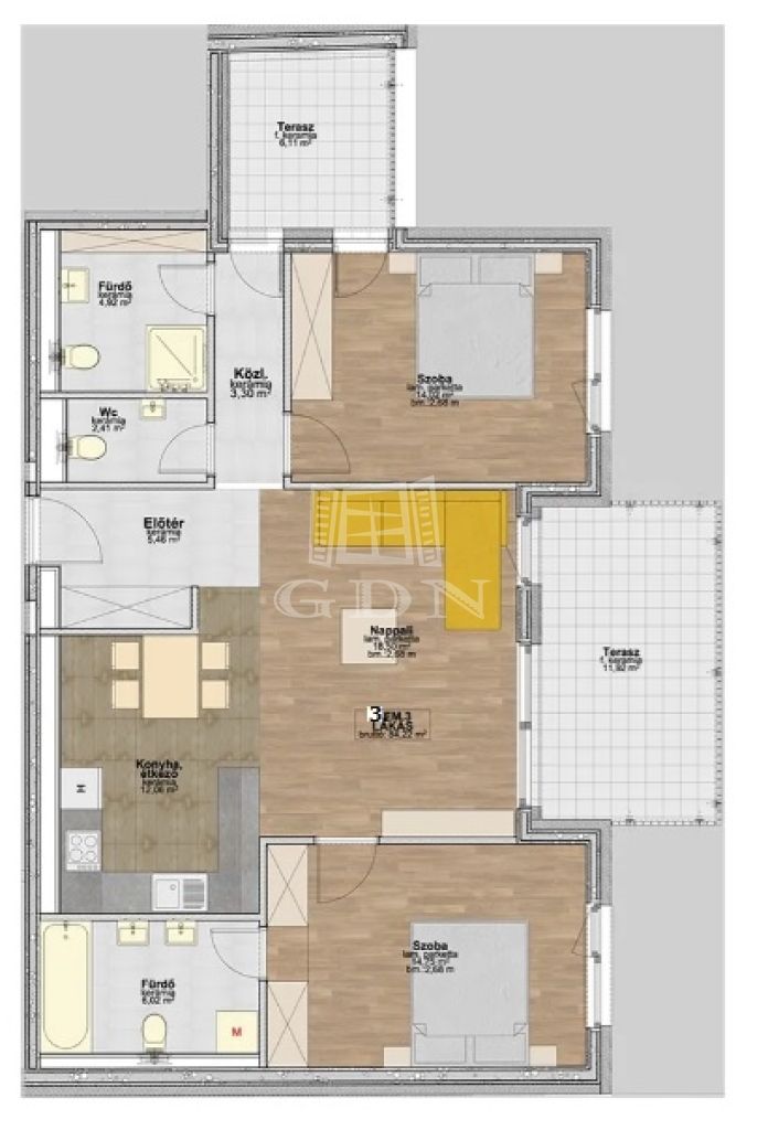 | 82 m2Alapterület | 3 Szoba |