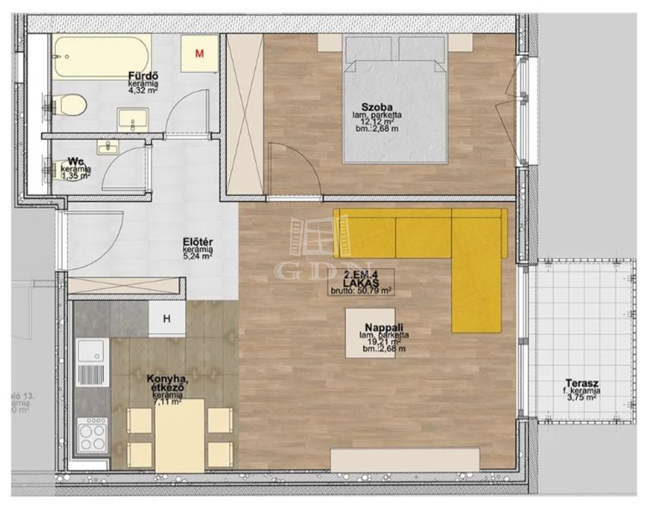 | 50 m2Alapterület | 2 Szoba |