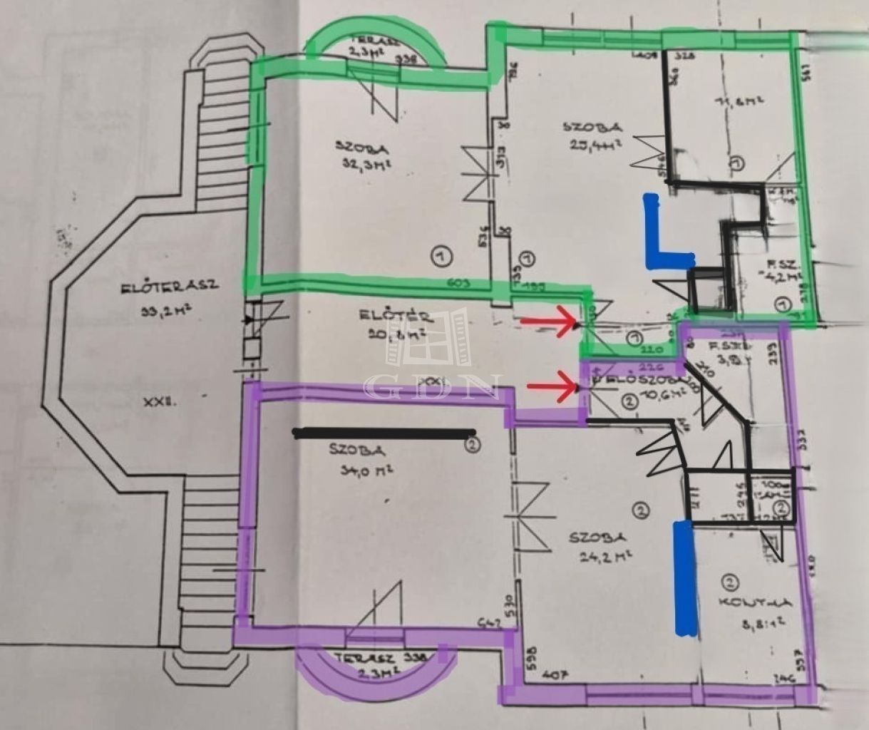 Az 1918- ban épült villa historizáló - eklektikus stílusban épült, az építész annak idején a házat saját magának tervezte, napjainkban folyamatosan karbantartott, állapot megőrzése, illetve javítása érdekében a társasház folyamatosan törődik vele, pályázatokon indul! Eladó ingatlanunk a magasföldszinti szinten helyezkedik el, (alaprajzon a lilával körbejelölt) egyik különlegessége, hogy a házba egy tekintélyes 33 nm-es külső teraszról jutunk be, majd a lakást egy zárt lépcsőházból közelíthetjük meg, ami a szomszéd ingatlannal kizárólagos használatban van.