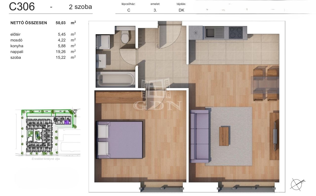 Eladó Lakás (téglaépítésű) Budapest XIV. kerület - Erzsébet Residence C306