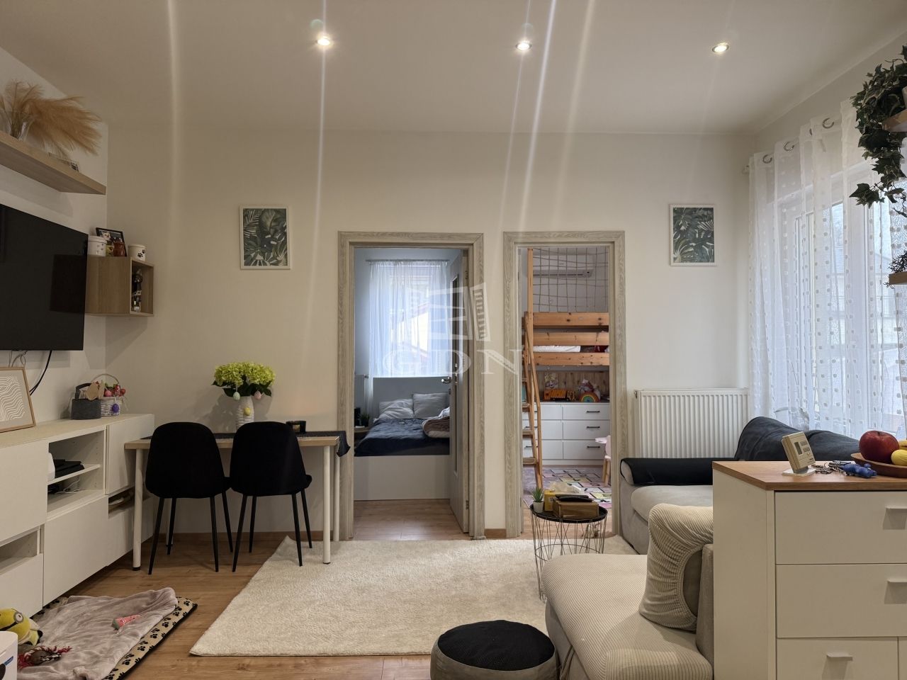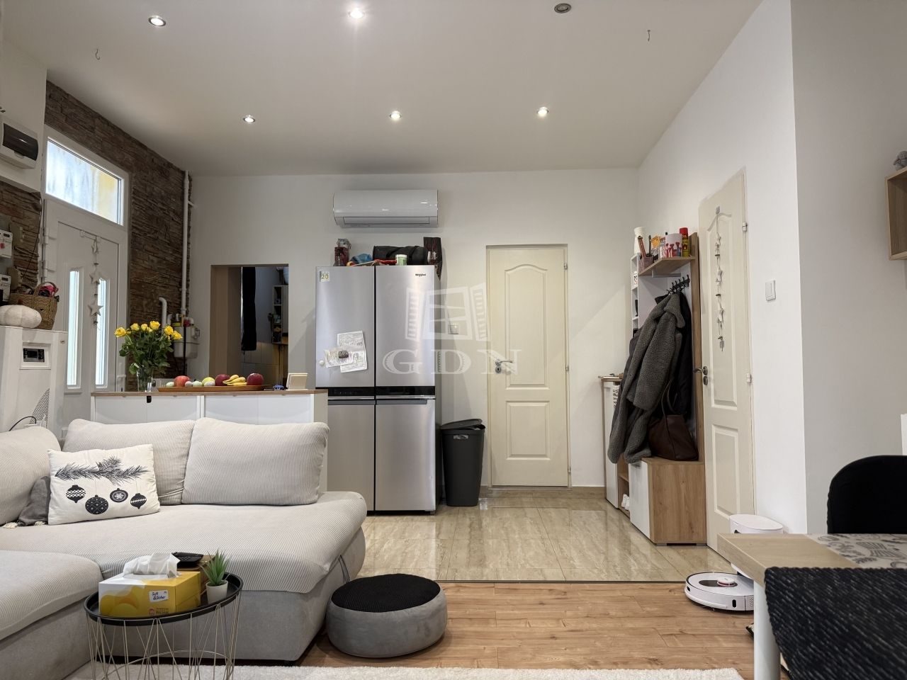 A lakás jó elosztású, világos terekkel rendelkezik: tágas nappali, két külön nyíló szoba (az egyik galériázott), külön WC és kádas fürdőszoba került kialakításra. A konyha egyedileg, asztalos által készített bútorral és beépített gépekkel felszerelt. Az ingatlanban két klíma található, a nyílászárók műanyagok, a burkolatok vízállóak. A bejárati ajtó egyedi gyártású. A lakás 2024-ben teljes felújításon esett át, melynek során a villany- és gázvezetékek is cserére kerültek.