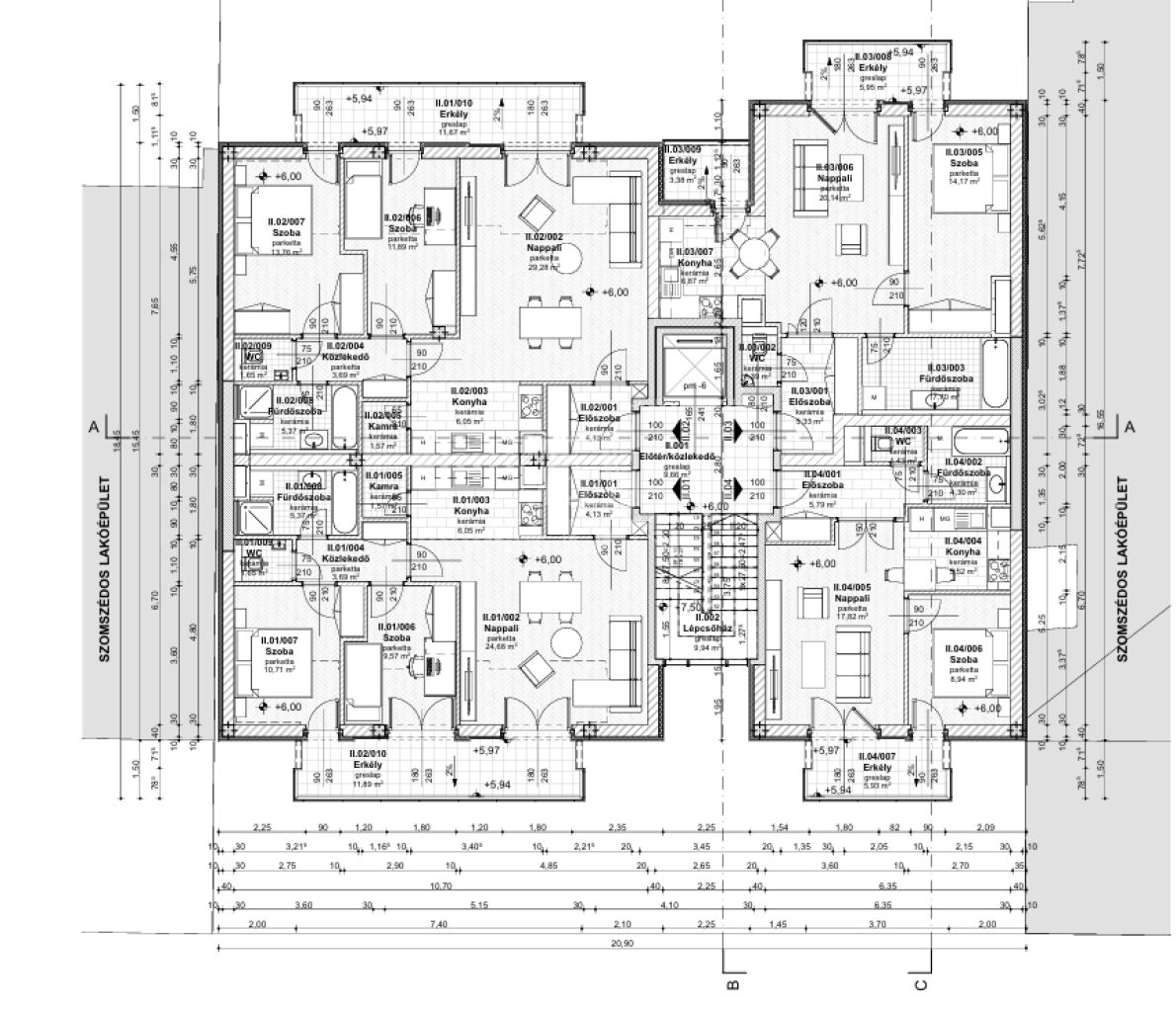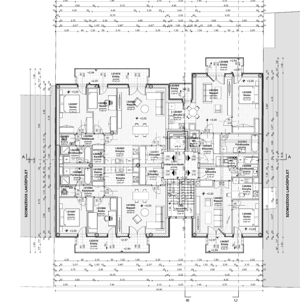 -13 lakás 4 szinten, jól átgondolt alaprajzokkal