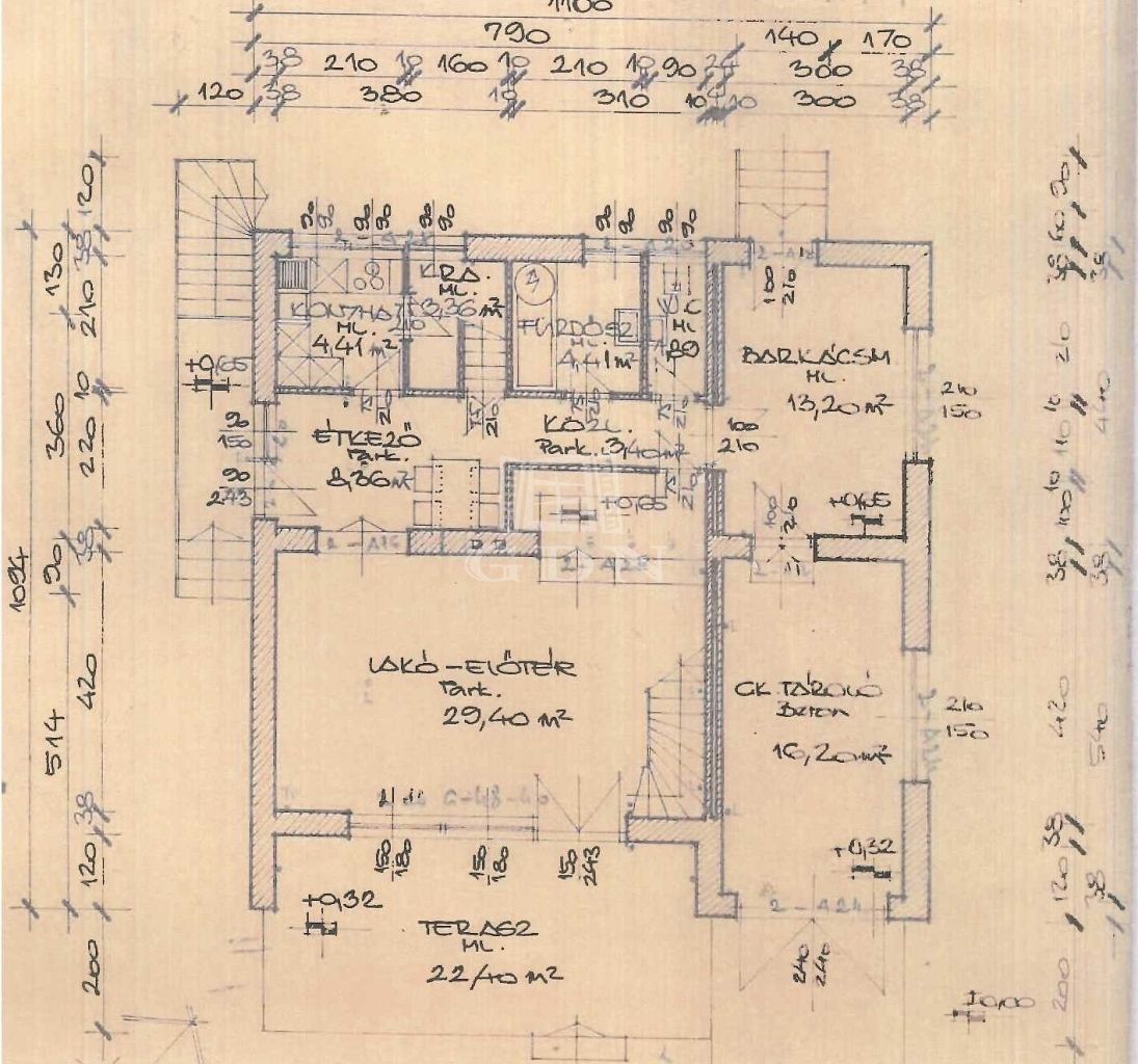 - Földszint: tágas nappali működő rusztikus kandallóval, étkező, konyha, fürdő, külön WC, műhely, garázs és pincelejáró.