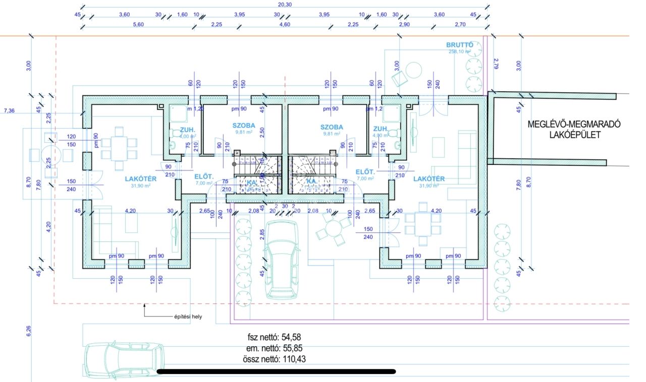 • terasz, kert, udvari autóbeálló