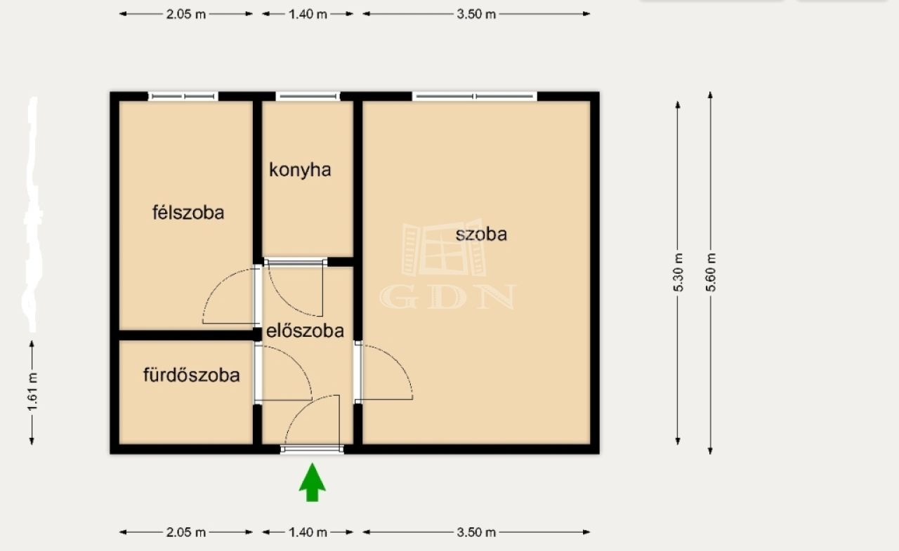 Előszobából balra a fürdőszoba, majd a hálószoba