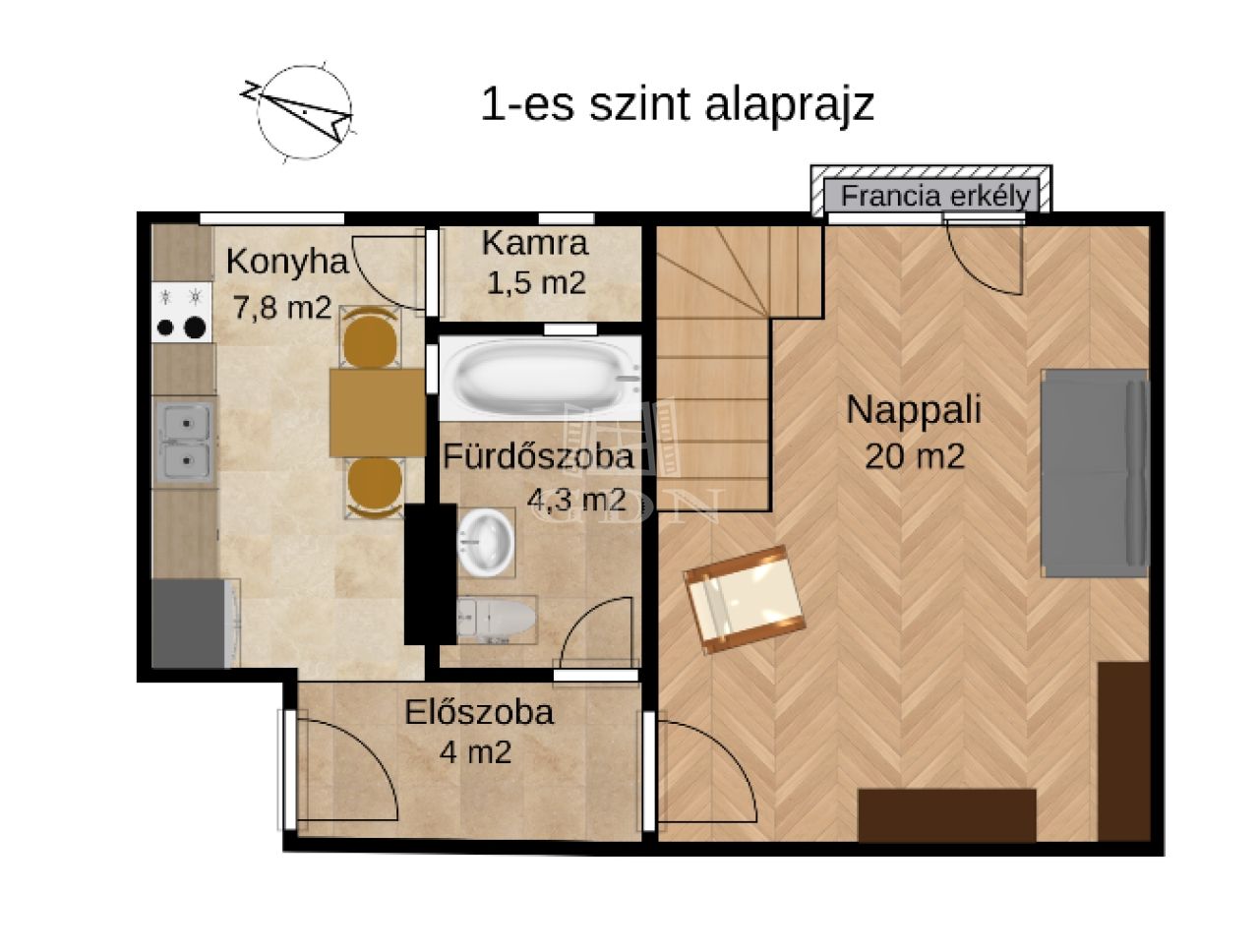 ELADÓ BELSŐ KÉTSZINTES LAKÁS SZENT IMRE-KERTVÁROSBAN