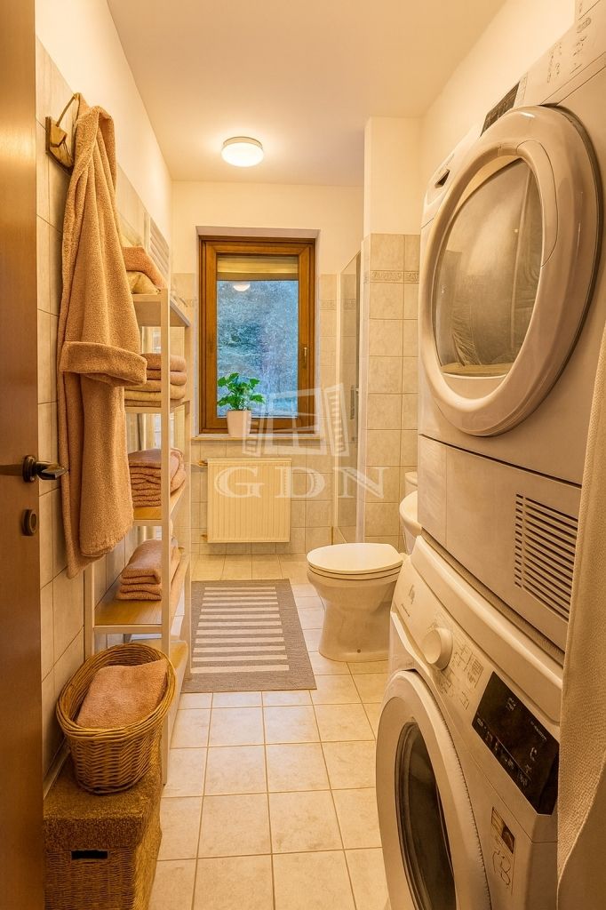 A lakás kertvárosias környezetben helyezkedik el, így a felhőtlen nyugalom garantált.