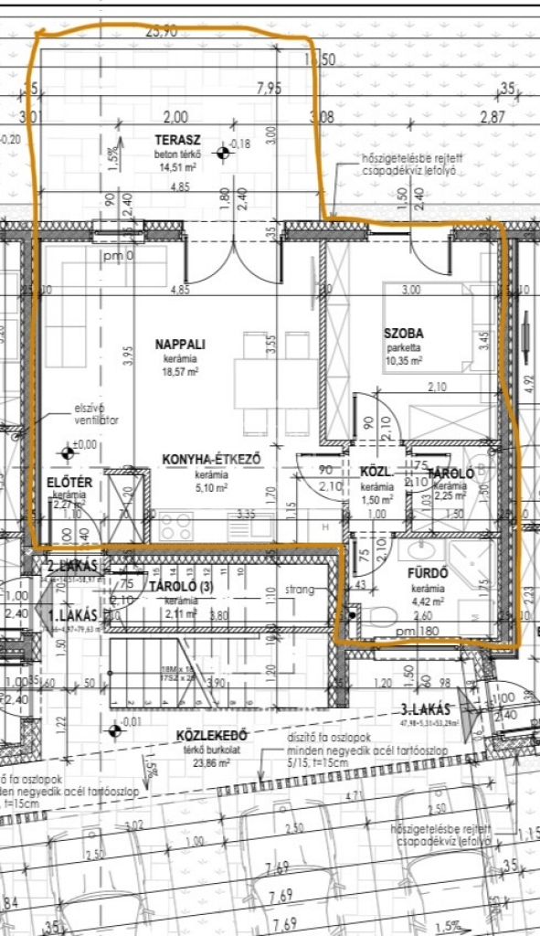 3-as lakás- földszinti- nettó 48 nm alapterületű