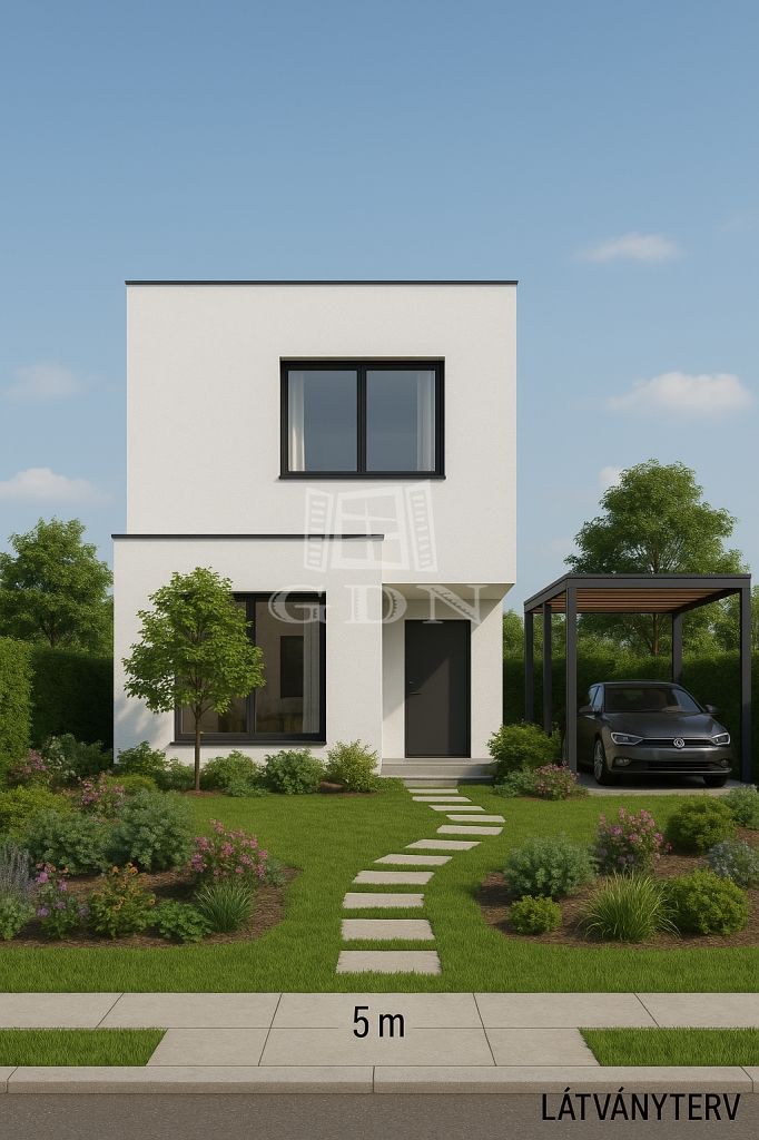 Előkertnek kötelezően el kell hagyni min.5métert max.10m.